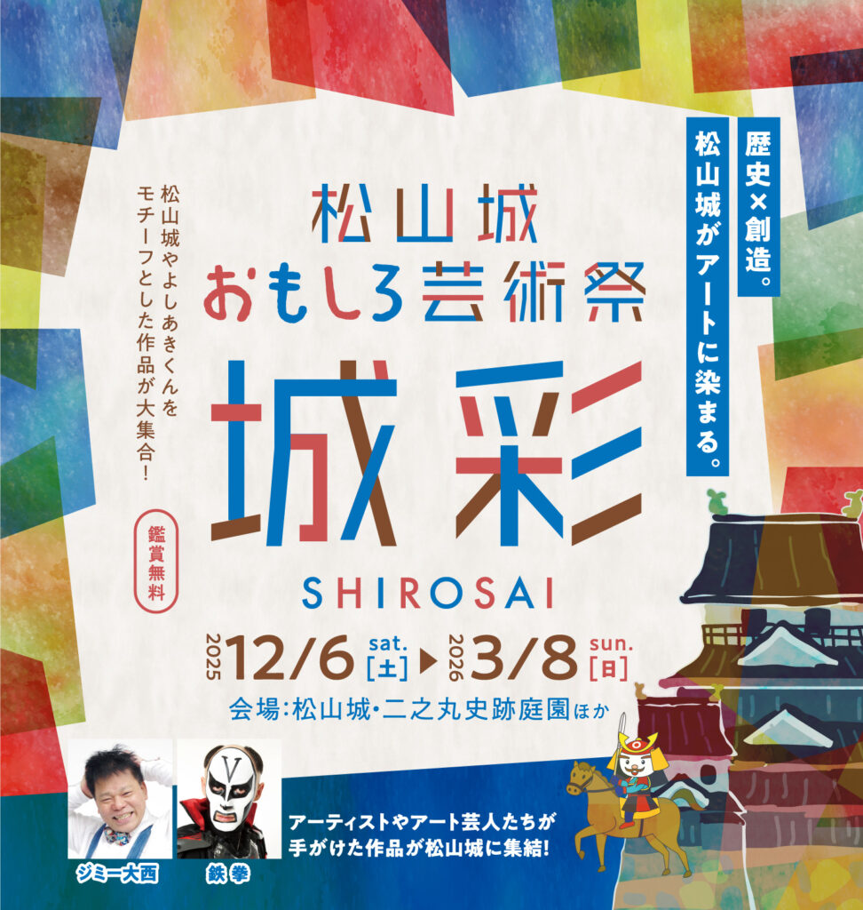 愛媛県松山市の「松山城・二之丸史跡庭園ほか」で、2025年12月6日(土)~2026年3月8日(日)の期間、『松山城おもしろ芸術祭「城彩」』が開催されます。